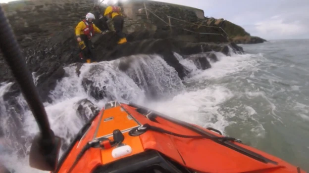 The pair, three other walkers and two dogs were stuck "with no way of getting out" and were rescued by a lifeboat crew. "A couple of seconds before and we could have all lost our lives," said English.
