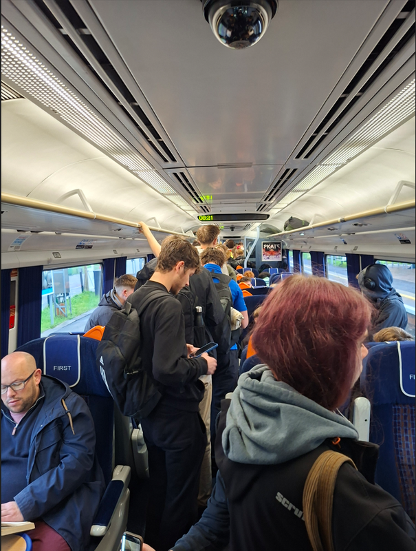 40+ pax were waiting on the platform at Pinhoe for the busiest service west of Yeovil, 1L03 (0533 Salisbury to Exeter St Davids), which arrived some 10 minutes down and was already crush-loaded. First Class was declassified and several pax were stood in the rear cab of the unit! It lost another couple of minutes whilst folk got onto the train. It then crawled to Exeter Central, despite having clear signals all of the way and arrived 17 minutes down.