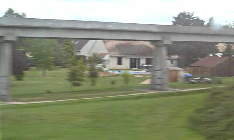 I couldn't work out what it was but of course it was the inverted 'T' section test track for the experimental french suspended-on-air passenger service, built in such a location that it could be of utility should the principle have been adopted as a transport system.