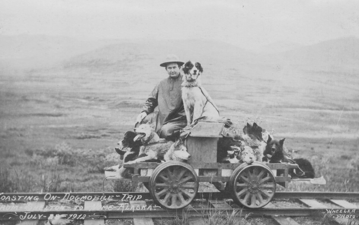Wow. I've seen pictures of horses providing motive power on railways - trams and shunting wagons; and I've seen pictures of big dogs pulling child-sized dog carts on estate roads. But I never thought that I'd see dogs used as motive power on a railway.