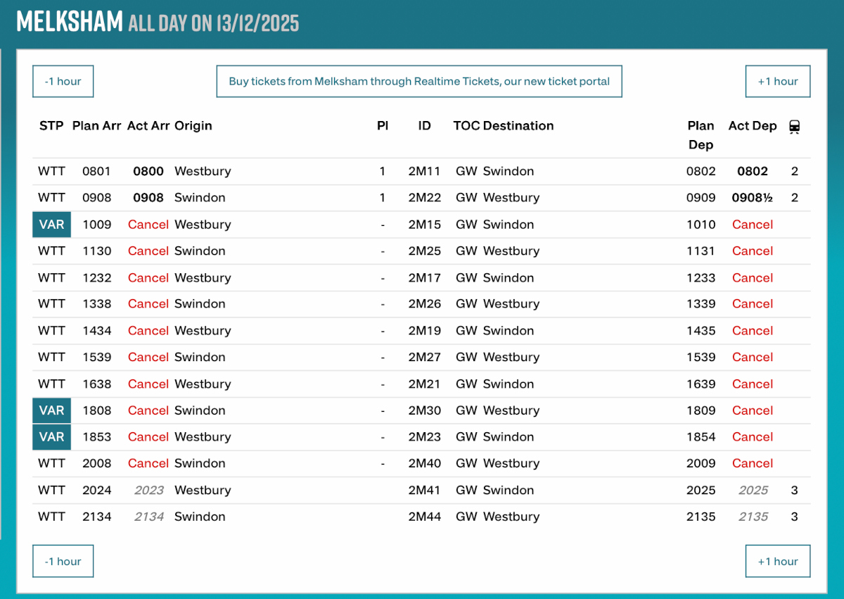 When I woke this morning and checked train times, everything was shown as running. I was down there to hand out Melksham printed bus and train timetables to anyone who wanted them