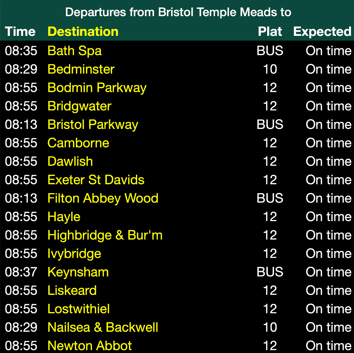 05:54 showing as a Keynsham starter (to Portsmouth Harbour) BRI▸ itself closed apart from southbound from the platforms way outside the main building, trains running around the Rhubarb.