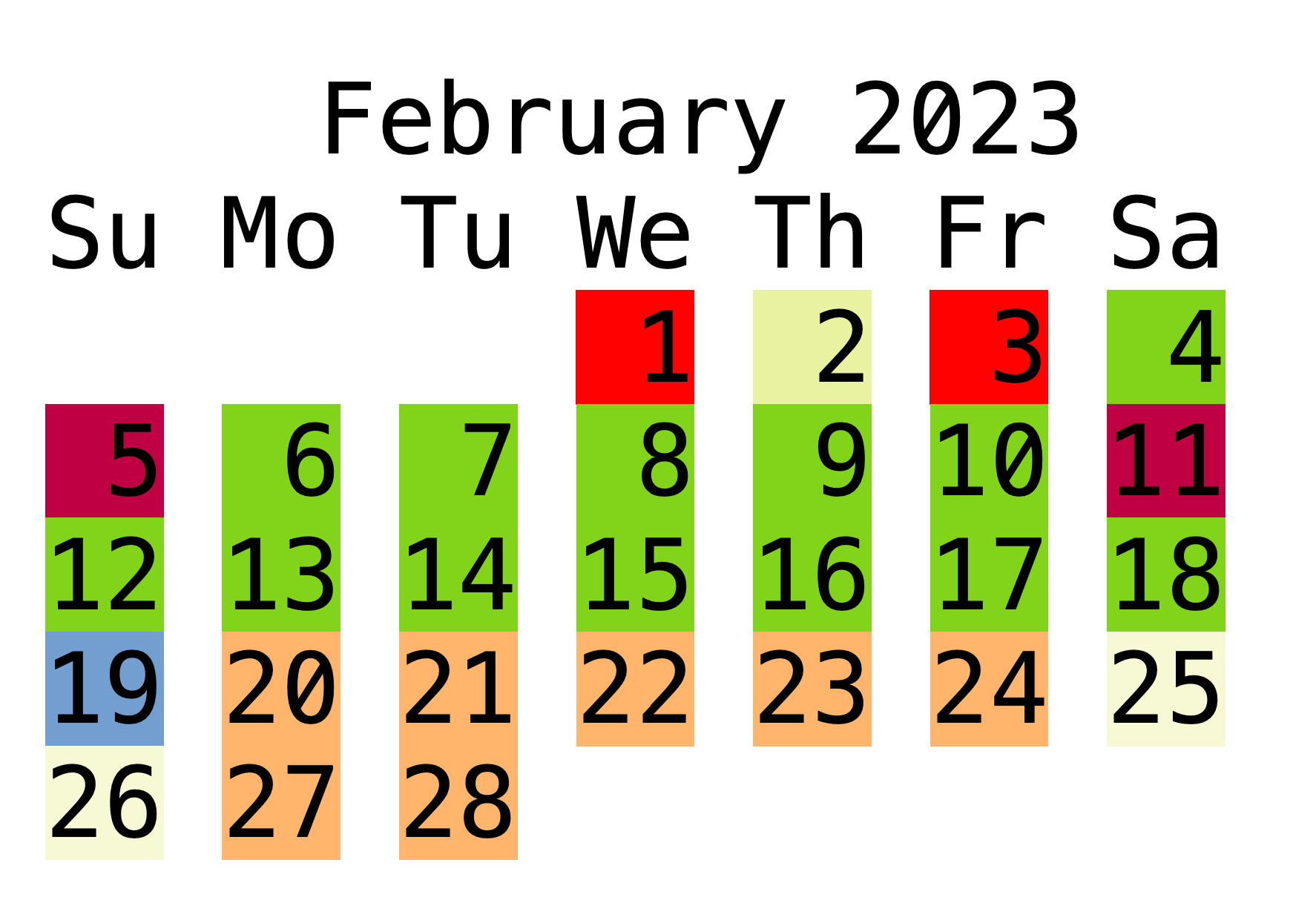 Orange – only a handful of local trains (5 calling - 2 one way adnd 3 the other) , replacement buses running