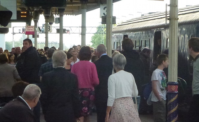 Quarter past eight on a Sunday morning - crowds boarding the 4 car TransWilts train to Westbury and Weymouth