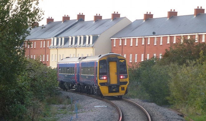 The final Sunday train leaves Melksham (yes, they were standing in there) past housing recently built