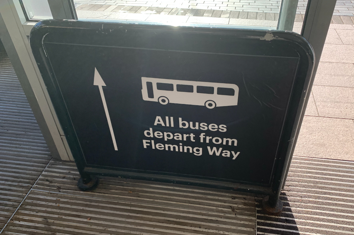 The train from Melksham ran, and on time. 42 passengers on board - not bad for the first train on a November Sunday morning. Got to Swindon ... and followed the instructions to get a bus from Fleming Way.