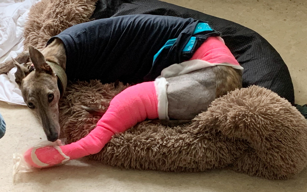 She is being redecorated with dressings and bandages twice a week ... but this coming Tuesday has turned into a slightly more major visit to the vets as we'll be meeting up with the vetinary surgeon who did the repair operation and at this stage there's no guarantee of timing - it will be sometime in the afternoon.