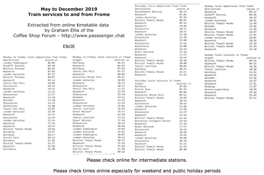 FTC previously produced a summary leaflet for all BUS services from Frome but this has now been discontinued. So they will not be doing one for trains.