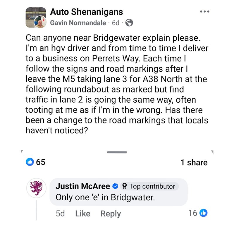 ... (cough) ... It's Bridgwater, not Bridgewater - please don't set JayMac off on one.
