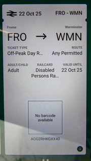 Have had several of these, never when my ticket was inspected though. Would/Could I be liable for a Penalty Fare ? Or is the alphanumeric "code" sufficient. Google Wallet would not accept it either. The PDF accompanying the email confirmation did have a proper QR coded ticket with it.